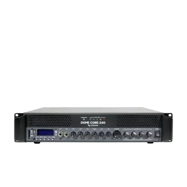 El amplificador Dome Core 240 le permite al usuario conectar múltiples parlantes y obtener hasta 4 zonas de control independiente. El equipo cuenta con ecualizador de 2 bandas, dos entradas de micrófono y 1 entrada/salida de línea para cualquier accesorio que quieras conectar a la potencia. A su vez, te permite reproducir una gran variedad de contenido gracias a sus slots SD y USB, como así también por intermedio de su antena FM y su conectividad Bluetooth. Dome Core 240 , la opción ideal para simplificar tus instalaciones.