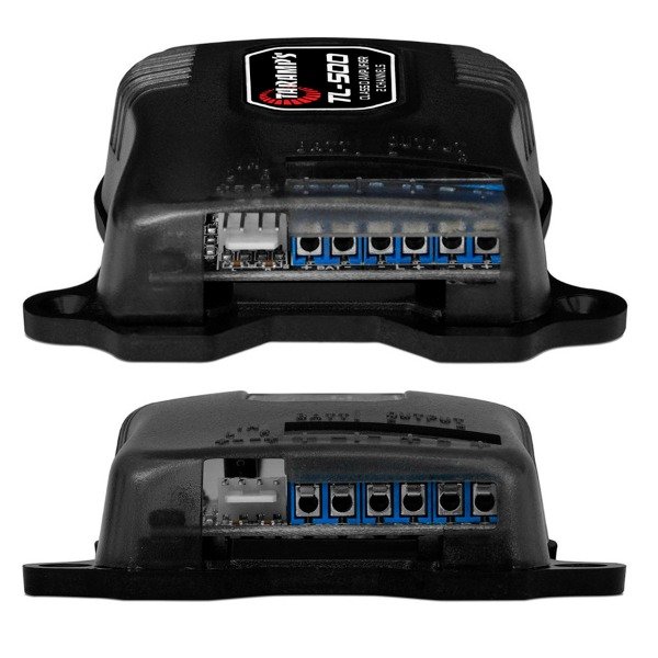 El amplificador TL 500 es estéreo; con una potencia máxima de 90 Watts RMS e impedancia de 2 ohmios, cuenta con dos canales de 45 Watts RMS. El TL 500 ofrece tecnología innovadora para sistemas de audio para automóviles con activación automática por nivel de audio (sistema A.R.T.) para mejorar su sistema de audio original y reproducir los altavoces de puertas.